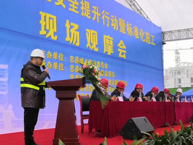 当日,县城乡建委主任田长忠、县城乡建委副主任黄智华、忠县建设工程质量监督站、忠县建设工程施工安全监督管理站等领导及忠县辖区内建设单位、监理单位、施工单位等代表共计280余人参加了本次现场观摩会,以促进全县在建工程项目质量安全管理意识和水平的提升,切实推进建筑施工质量安全标准化工作。