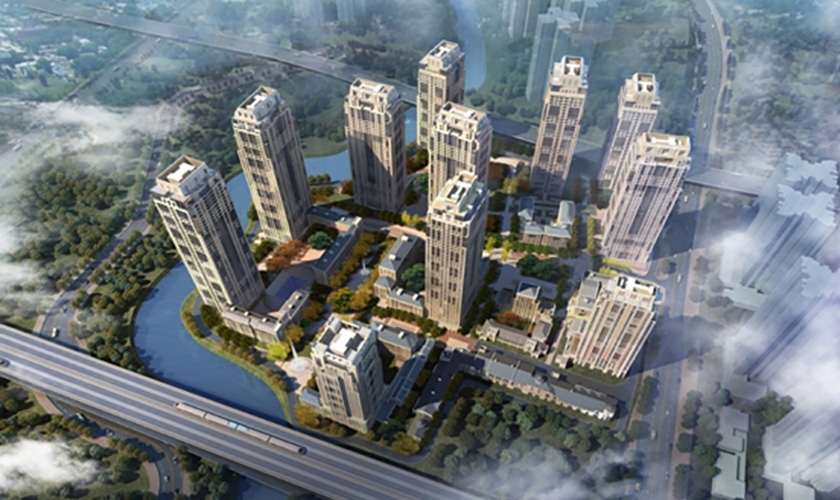 项目位于重庆市江北区溉澜溪,由5栋超高层住宅、3栋高层住宅、8栋洋房、1栋幼儿园及集中商业和车库组成,总建筑面积约44万平方米,为现浇框架剪力墙结构,最高建筑高度199.2米。